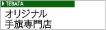 | 営業品目 | 横断幕、応援旗・団旗、のぼり旗、大漁旗、ペナント、タペストリー、のれん、Tシャツ、はっぴ マグネット、ステッカー、捨て看板、スタンドバナー、タオル、腕章、手旗の製作 |