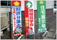お店や駐車場などへの誘導や、イベントの告知など、幅広い用途で使われるオリジナル捨て看板。